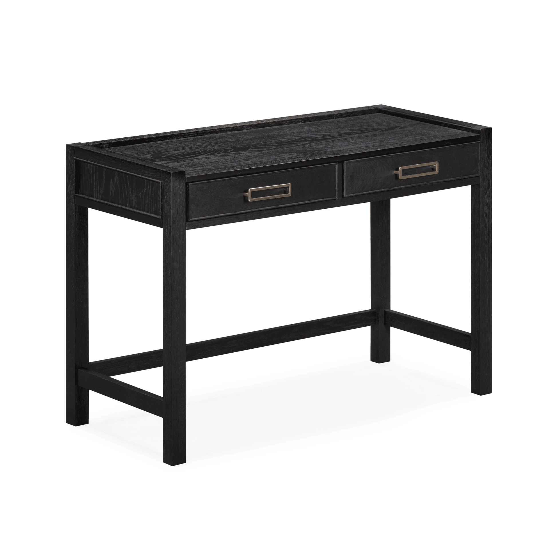 Finished in a crisp black oak veneer, it features two slim drawers—ideal for storing makeup, accessories, or everyday essentials.